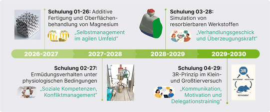 Innerhalb der Forschungsgruppe wird der wissenschaftliche Austausch mit und zwischen Nachwuchswissenschaftlern*innen über Vollversammlungen, Schulungen, Arbeitskreistreffen, um nur einige zu nennen, aktiv gefördert. Externe Forschungsaufenthalte für wissenschaftliche Mitarbeiter*innen sollen den Zugang zu weiteren experimentellen Geräten sichern. Darüber hinaus werden Nachwuchsstipendien als Anschubförderung bereitgestellt, um hochqualifizierten Nachwuchswissenschaftlern*innen durch neue innovative Forschungsarbeiten den eigenen Projektantrag in der zweiten Förderperiode zu ermöglichen.